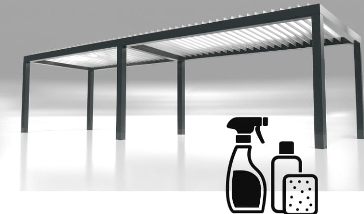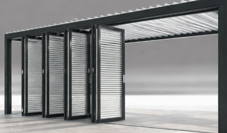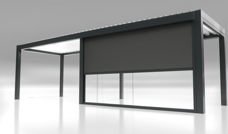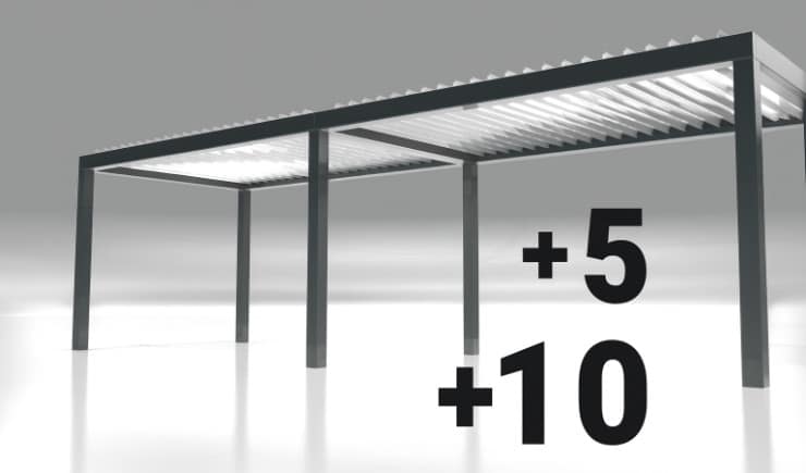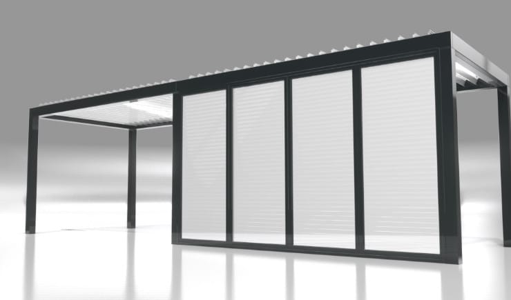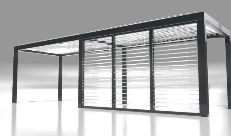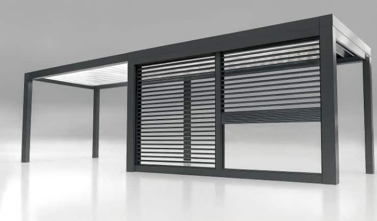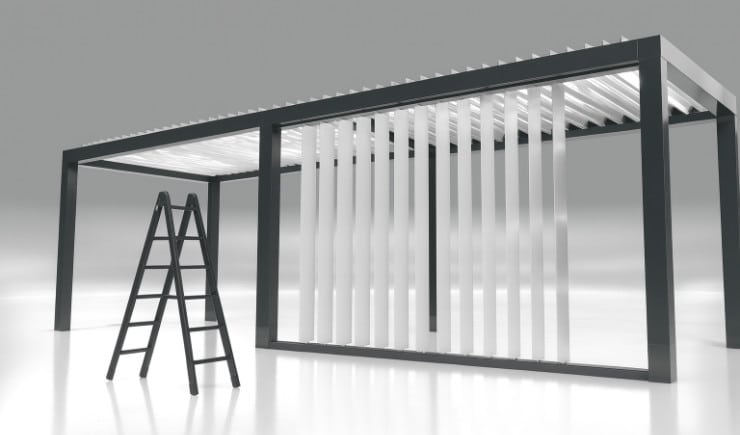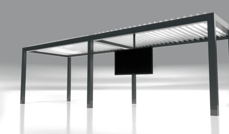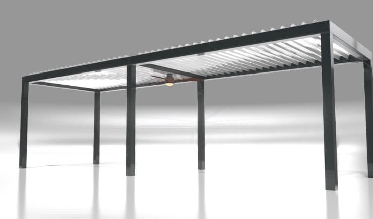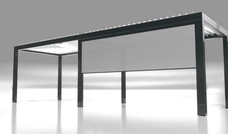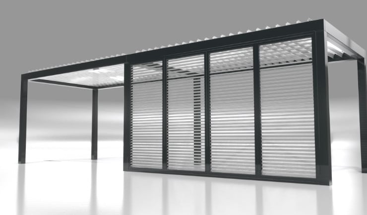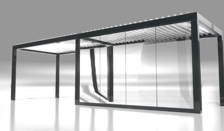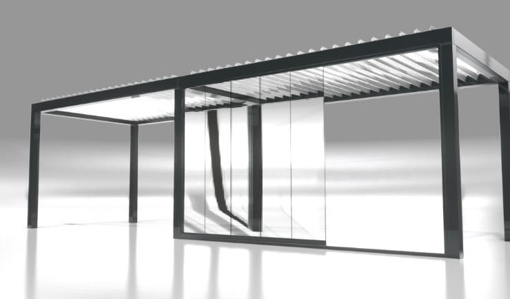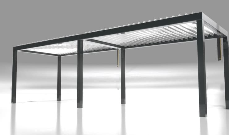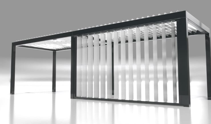 Unsere Lamellendächer sind regensicher, schützen vor Sonne und starkem Wind und verfügen mit 120 Grad-Lamellen-Drehung über den besonders effizienten bioklimatischen Effekt bei Hitze.