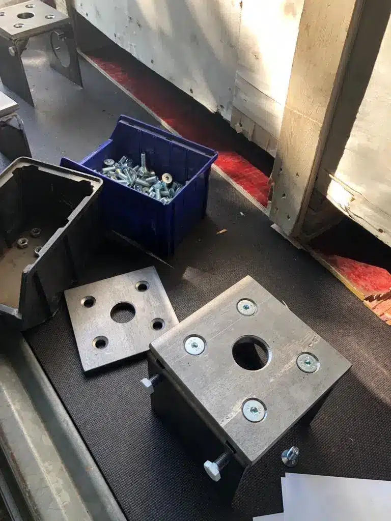 Sie erhalten die nötige Befestigung mit den Ankerdübel und M12 Bolzen mitgeliefert. Diese können Sie bei Beton und Stein direkt anwenden und fest verschrauben. Bei Mauerwerk empfehlen wir die Bohrlöcher mit Injektionsmörtel zuvor zu verfüllen und dann den Dübel und Anker einzusetzen. Richten Sie alles in Waage aus und verwenden Sie eine lange Waaglatte und ein Lot für die Ausrichtung.