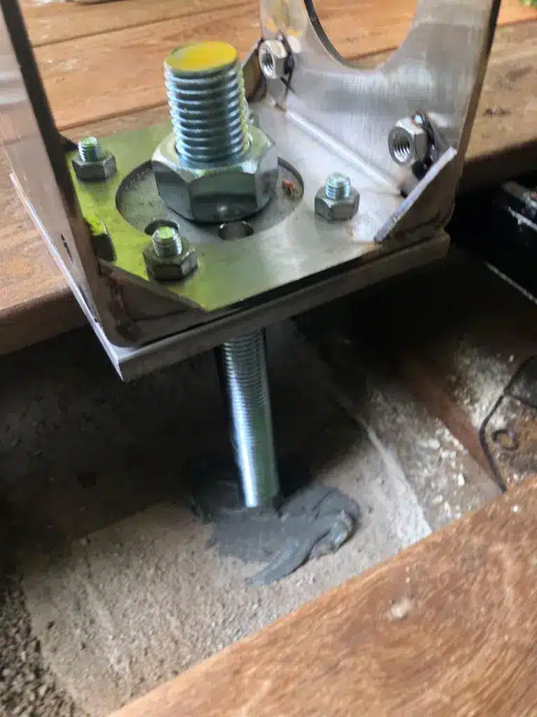 Für bestehende Terrassen mit großem Gefälle liefern wir ein Distanzmontageset mit einer M30 Gewindestange – Zusatzplatte zum Aufschrauben und entsprechende Muttern mit. Die Gewindestange wird dann ins Fundament mit Montagemörtel (zb. Fischer FIS SB High Speed 390s Superbond-Mörtel) eingeklebt. Sie können dann mit den Muttern die Abstände gut regulieren.