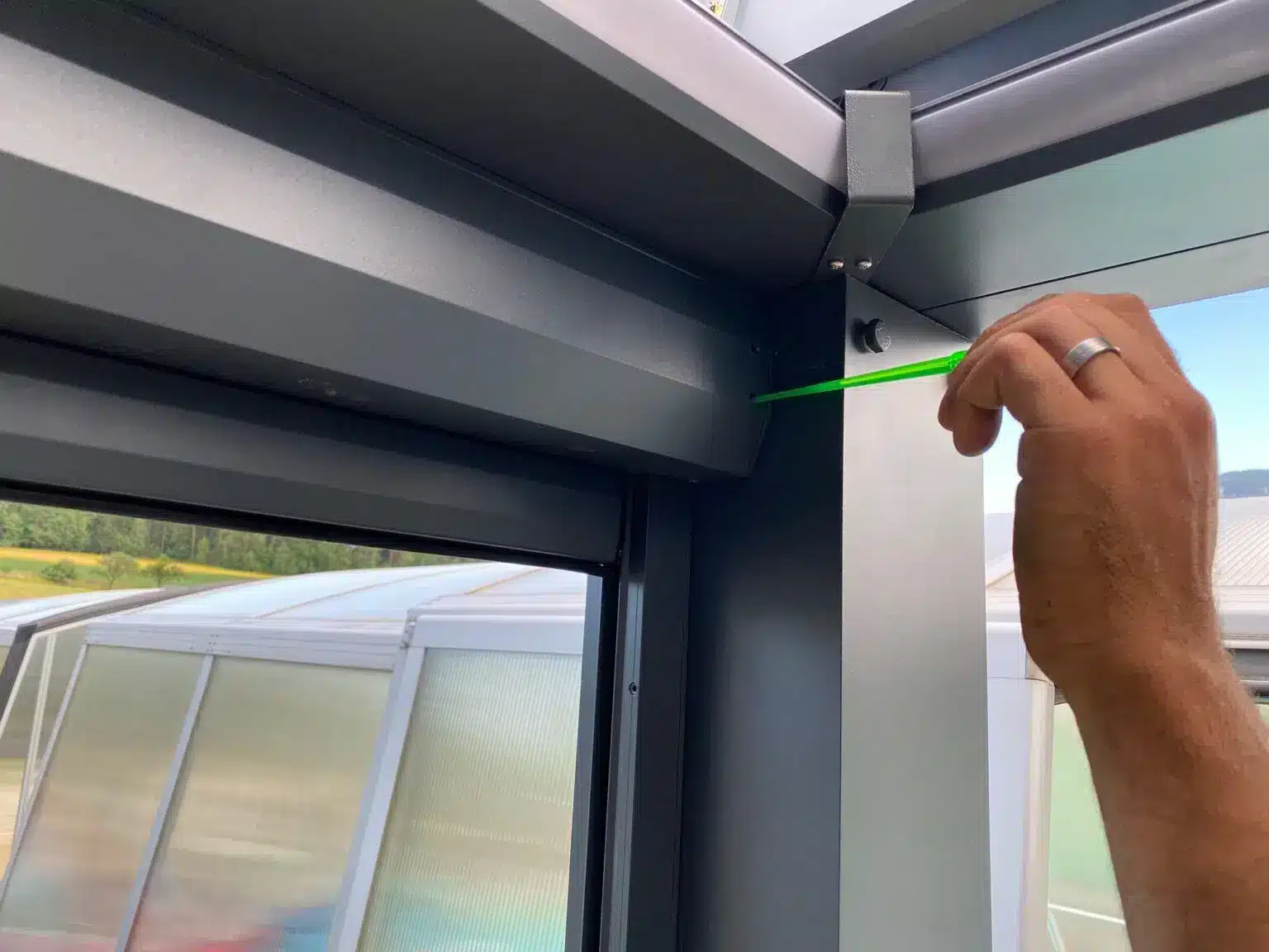 - Prüfen Sie ob das Lamellendach in Waage ausgerichtet ist und der Rechtewinkel stimmt. Messen Sie die Diagonalen, diese müssen ident sein.